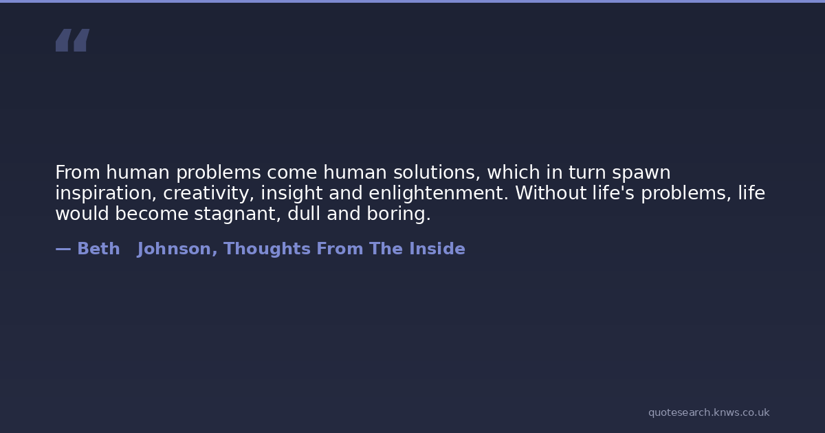 From human problems come human solutions, which in turn spawn inspiration, creativity, insight and enlightenment. Without life's problems, life would become stagnant, dull and boring.