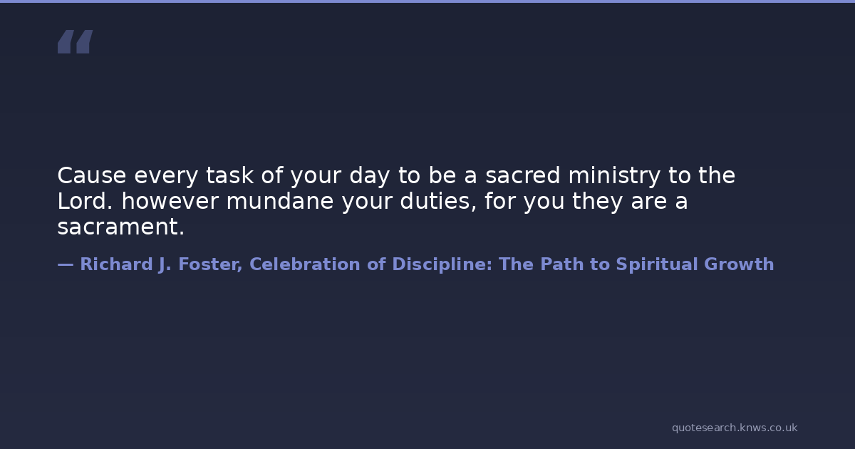 Cause every task of your day to be a sacred ministry to the Lord. however mundane your duties, for you they are a sacrament.