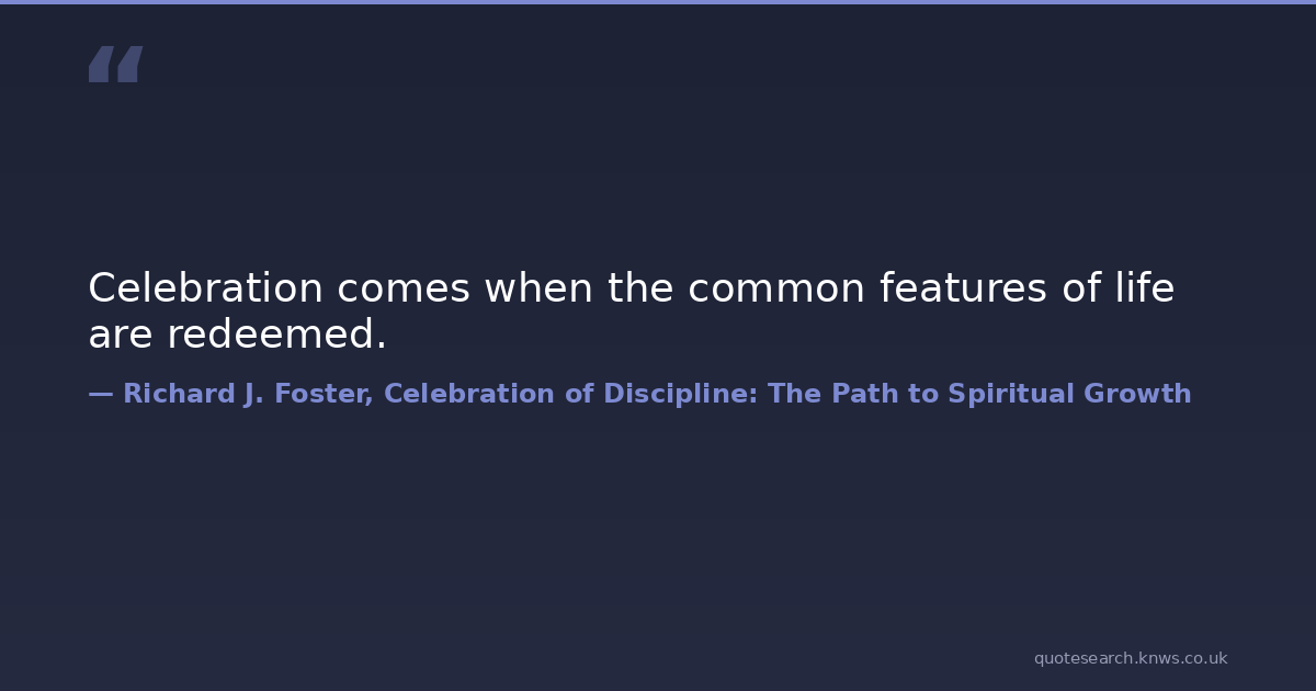Celebration comes when the common features of life are redeemed.