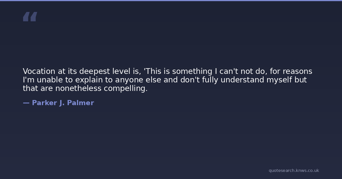 Vocation at its deepest level is, 'This is something I can't not do, for reasons I'm unable to explain to anyone else and don't fully understand myself but that are nonetheless compelling.