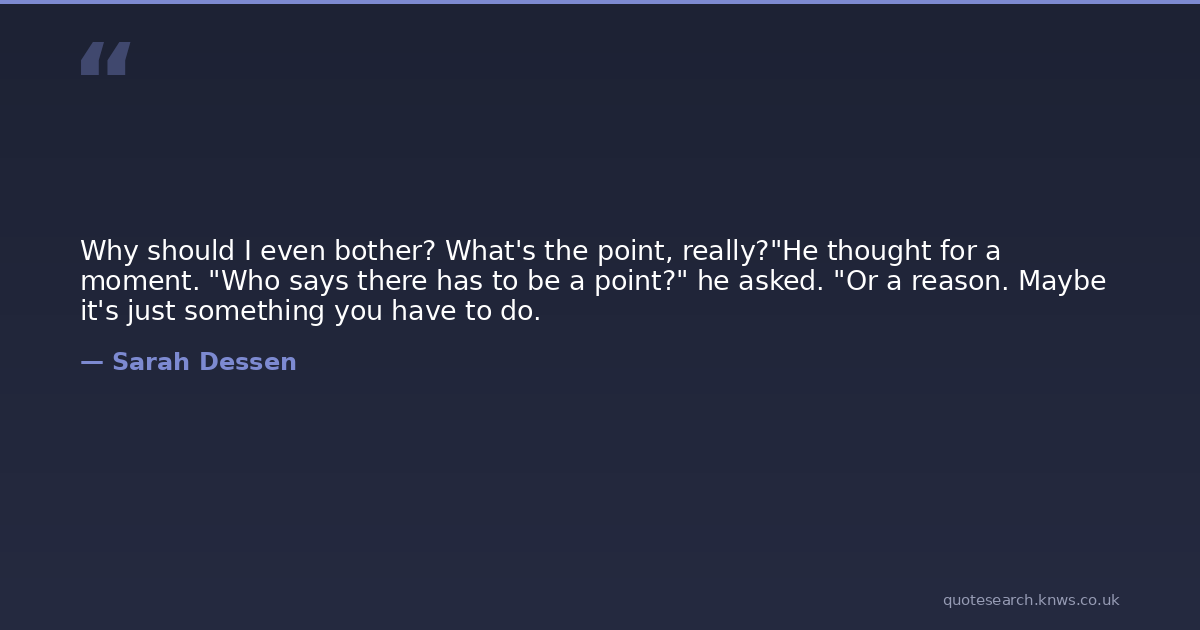 Why should I even bother? What's the point, really?"He thought for a moment. "Who says there has to be a point?" he asked. "Or a reason. Maybe it's just something you have to do.