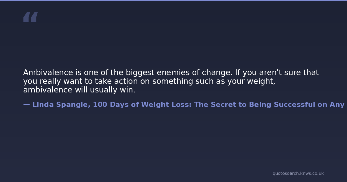 Ambivalence is one of the biggest enemies of change. If you aren't sure that you really want to take action on something such as your weight, ambivalence will usually win.