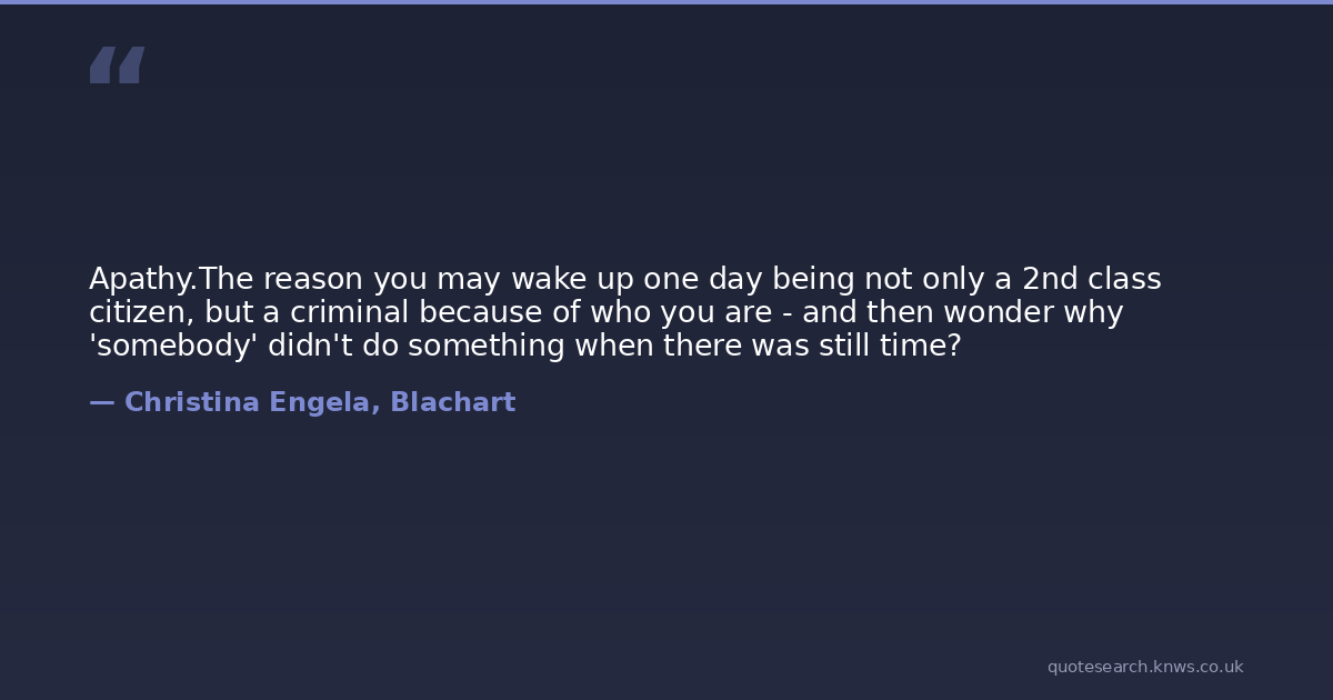 Apathy.The reason you may wake up one day being not only a 2nd class citizen, but a criminal because of who you are - and then wonder why 'somebody' didn't do something when there was still time?