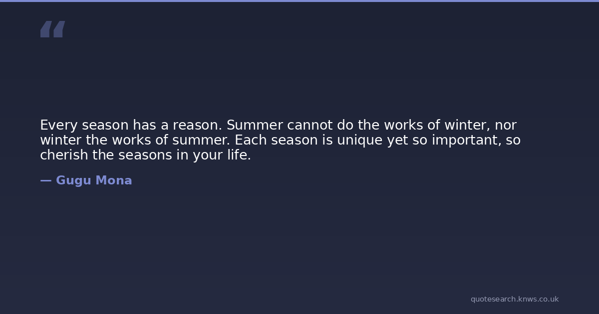Every season has a reason. Summer cannot do the works of winter, nor winter the works of summer. Each season is unique yet so important, so cherish the seasons in your life.