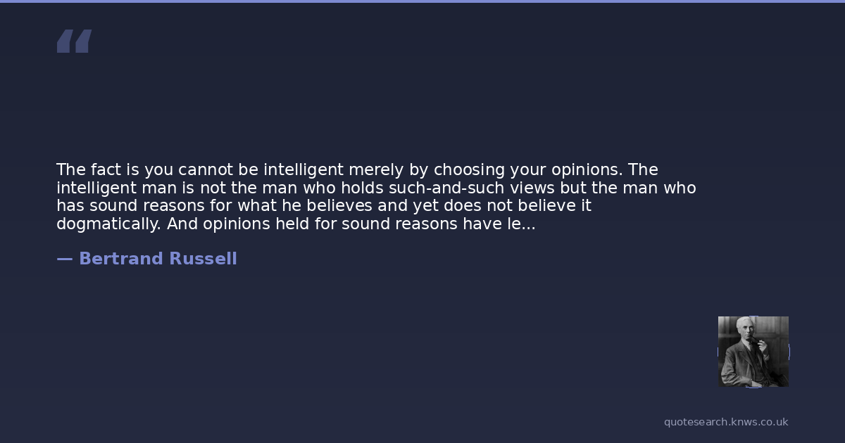 The fact is you cannot be intelligent merely by choosing your opinions. The intelligent man is not the man who holds such-and-such views but the man who has sound reasons for what he believes and yet does not believe it dogmatically. And opinions held for sound reasons have less emotional unity than the opinions of dogmatists because reason is non-party, favouring now one side and now another. That is what people find so unpleasant about it.