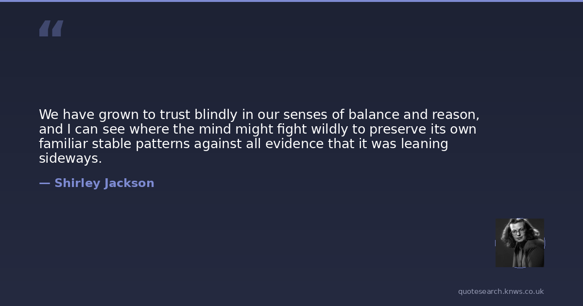 We have grown to trust blindly in our senses of balance and reason, and I can see where the mind might fight wildly to preserve its own familiar stable patterns against all evidence that it was leaning sideways.