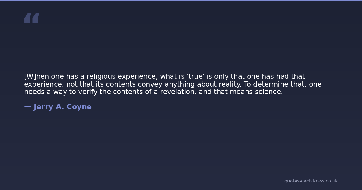 [W]hen one has a religious experience, what is 'true' is only that one has had that experience, not that its contents convey anything about reality. To determine that, one needs a way to verify the contents of a revelation, and that means science.