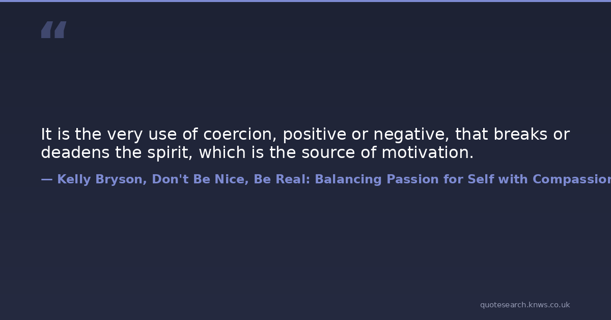It is the very use of coercion, positive or negative, that breaks or deadens the spirit, which is the source of motivation.