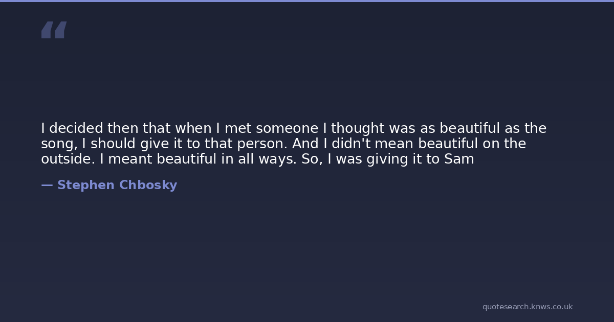 I decided then that when I met someone I thought was as beautiful as the song, I should give it to that person. And I didn't mean beautiful on the outside. I meant beautiful in all ways. So, I was giving it to Sam
