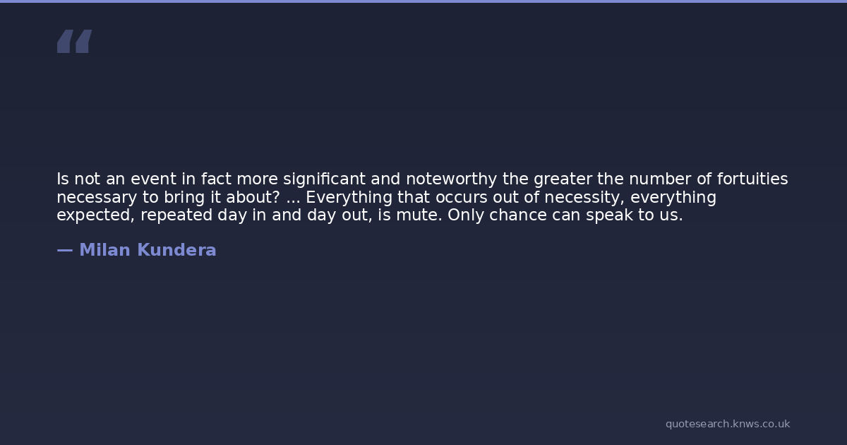 Is not an event in fact more significant and noteworthy the greater the number of fortuities necessary to bring it about? ... Everything that occurs out of necessity, everything expected, repeated day in and day out, is mute. Only chance can speak to us.