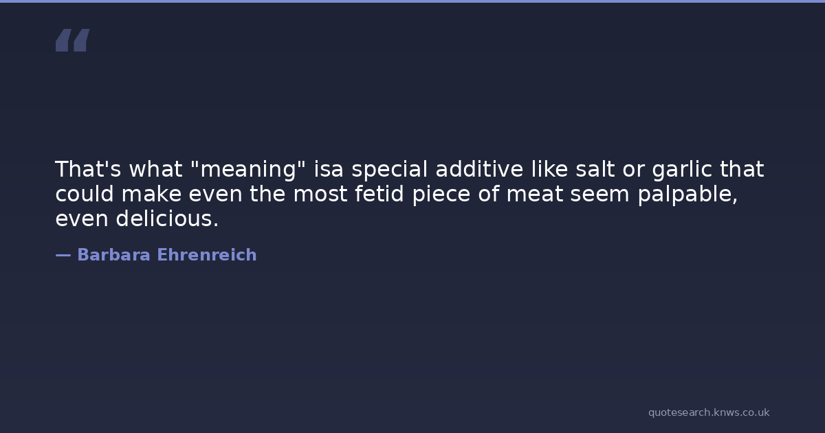 That's what "meaning" isa special additive like salt or garlic that could make even the most fetid piece of meat seem palpable, even delicious.