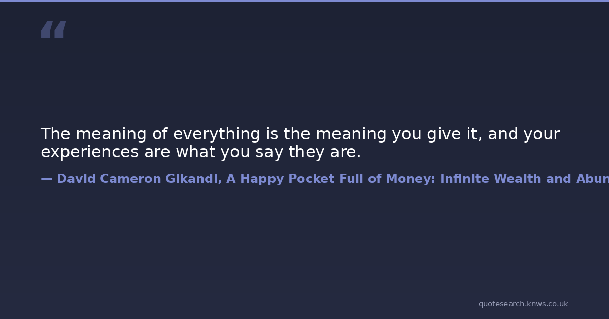 The meaning of everything is the meaning you give it, and your experiences are what you say they are.