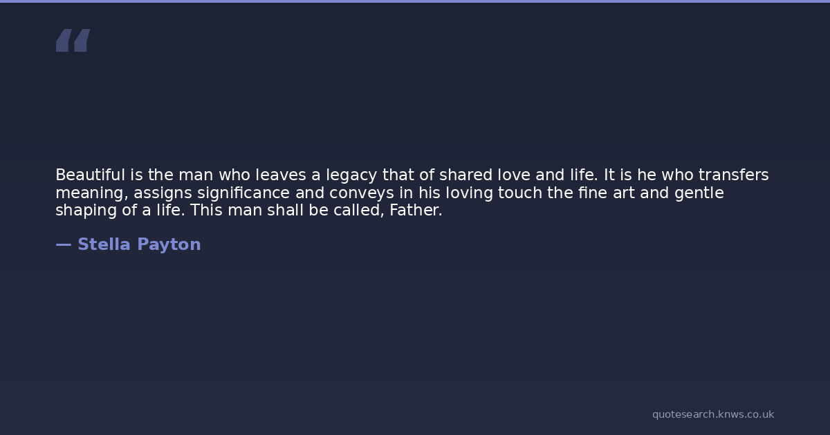 Beautiful is the man who leaves a legacy that of shared love and life. It is he who transfers meaning, assigns significance and conveys in his loving touch the fine art and gentle shaping of a life. This man shall be called, Father.