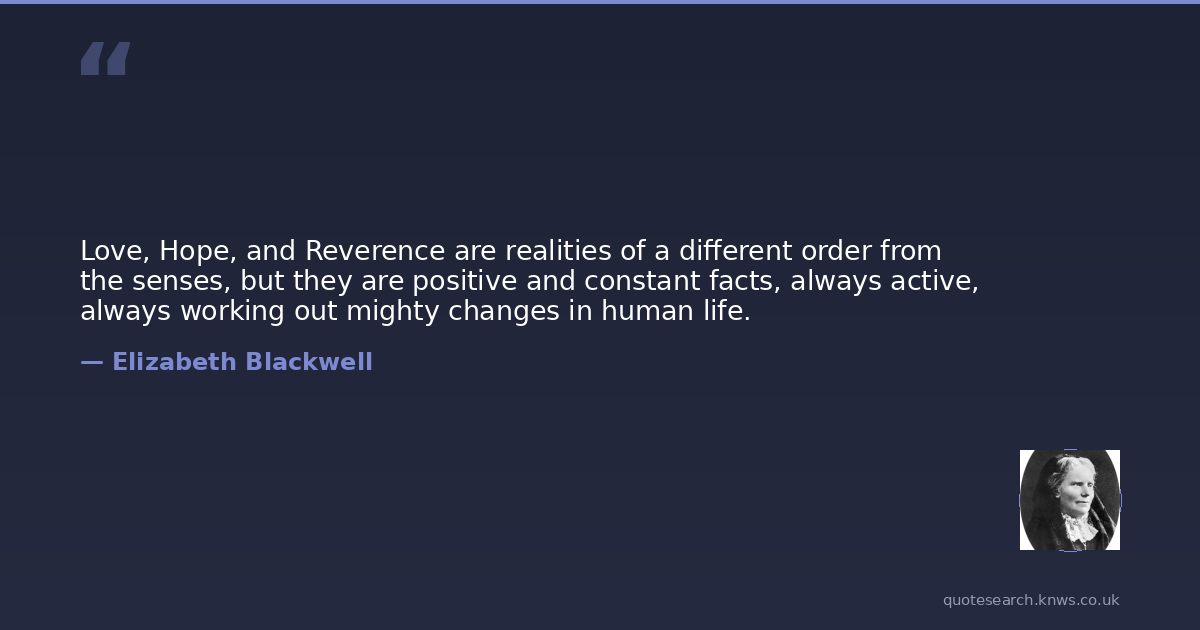 Love, Hope, and Reverence are realities of a different order from the senses, but they are positive and constant facts, always active, always working out mighty changes in human life.