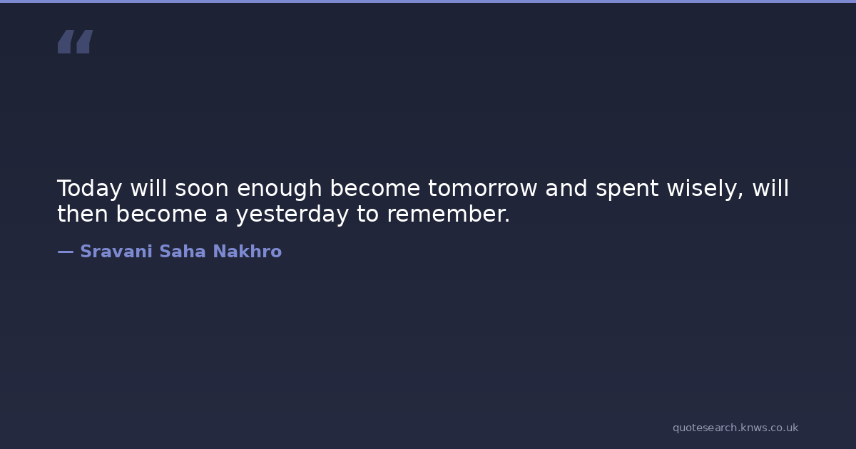 Today will soon enough become tomorrow and spent wisely, will then become a yesterday to remember.