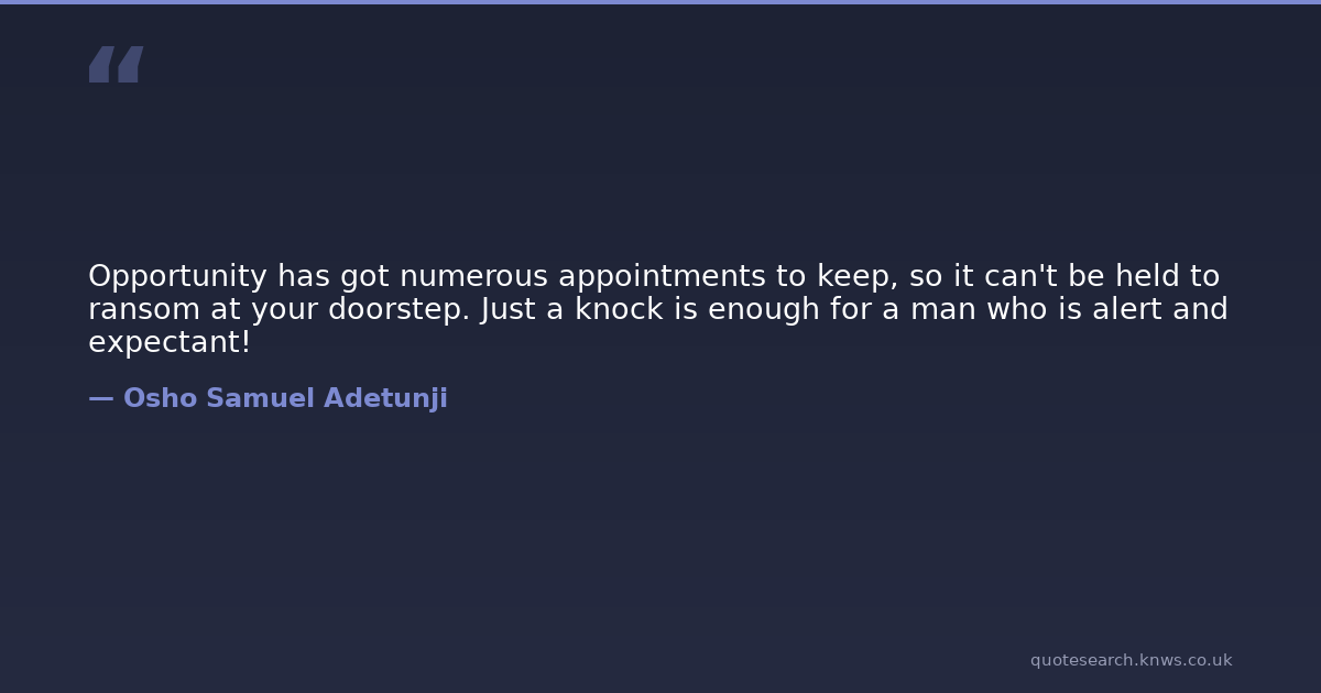 Opportunity has got numerous appointments to keep, so it can't be held to ransom at your doorstep. Just a knock is enough for a man who is alert and expectant!