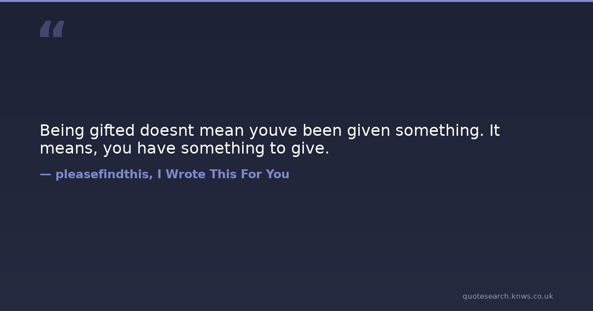 Being gifted doesnt mean youve been given something. It means, you have something to give.