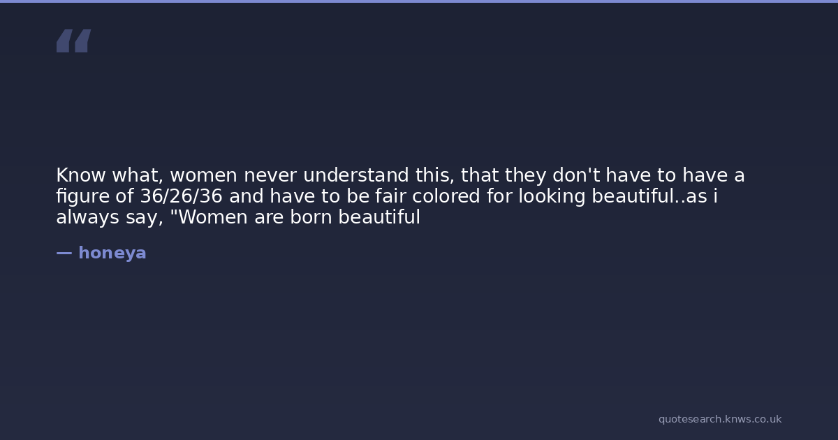 Know what, women never understand this, that they don't have to have a figure of 36/26/36 and have to be fair colored for looking beautiful..as i always say, "Women are born beautiful