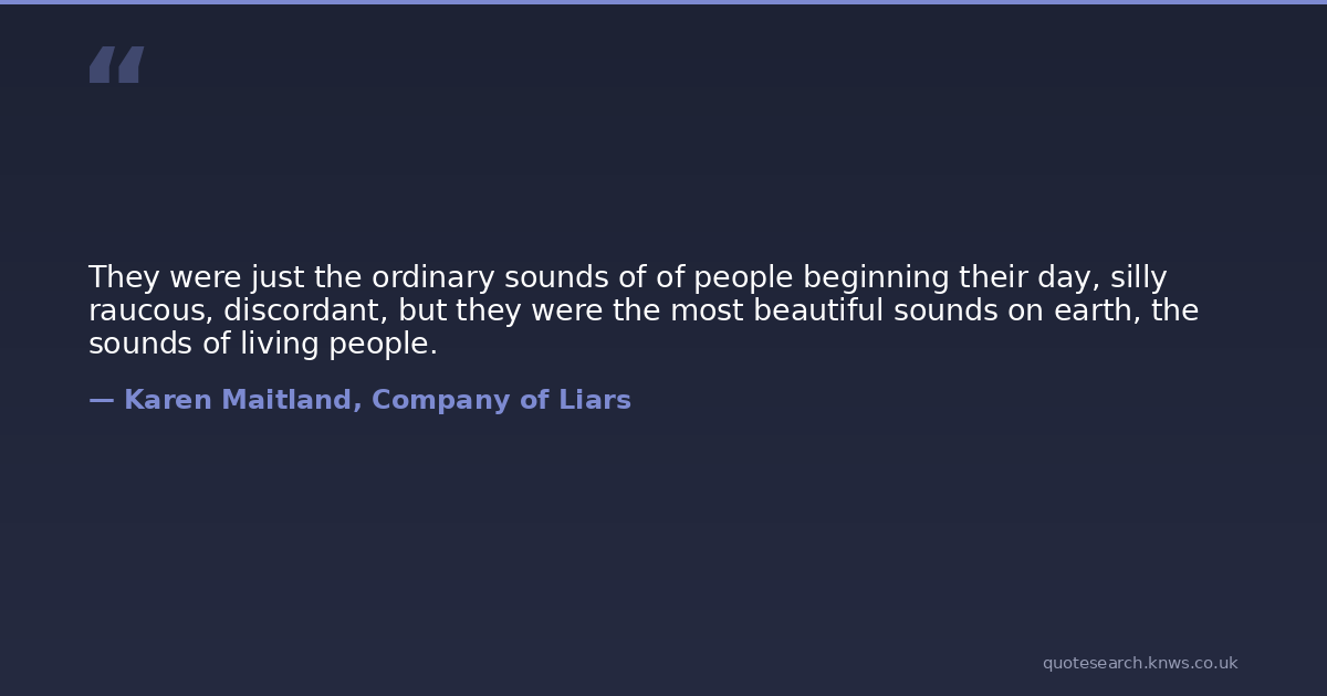 They were just the ordinary sounds of of people beginning their day, silly raucous, discordant, but they were the most beautiful sounds on earth, the sounds of living people.