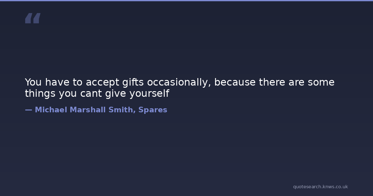You have to accept gifts occasionally, because there are some things you cant give yourself