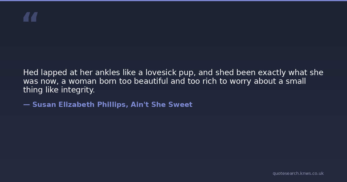 Hed lapped at her ankles like a lovesick pup, and shed been exactly what she was now, a woman born too beautiful and too rich to worry about a small thing like integrity.