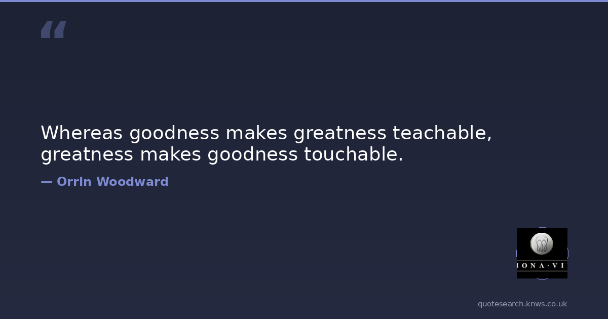 Whereas goodness makes greatness teachable, greatness makes goodness touchable.