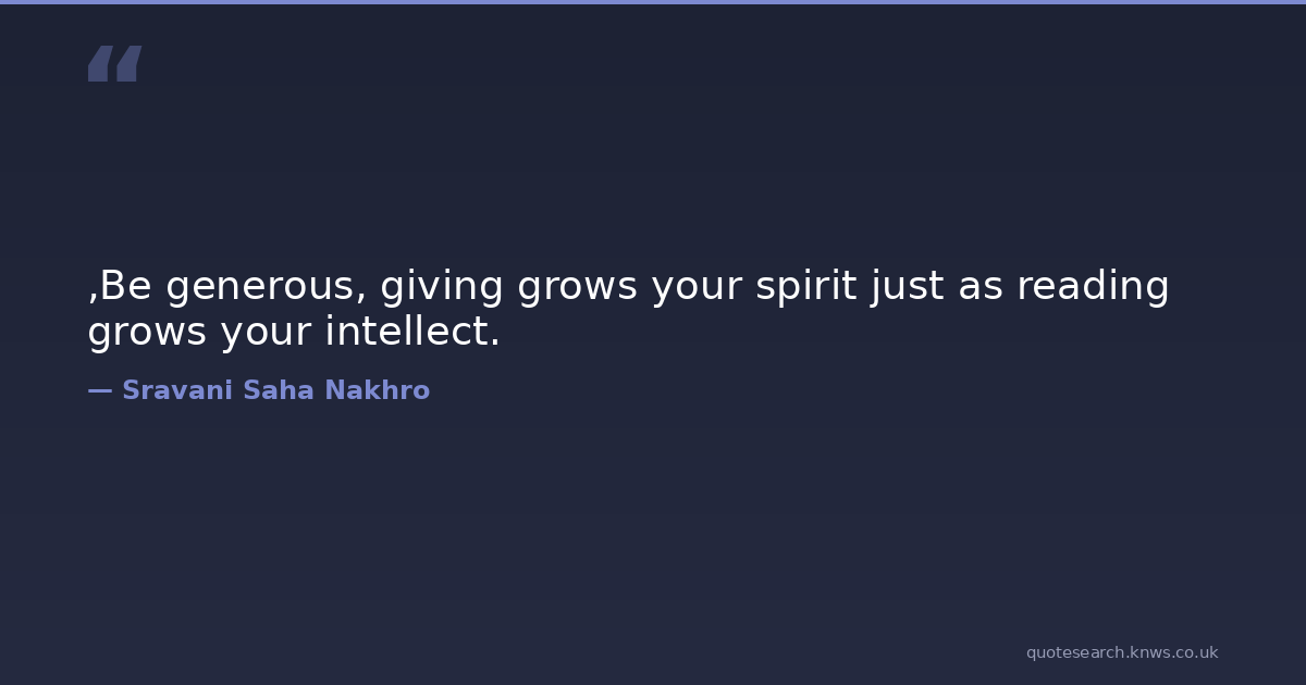 ,Be generous, giving grows your spirit just as reading grows your intellect. greatness Download Image Share on X Share on Facebook Copy Link