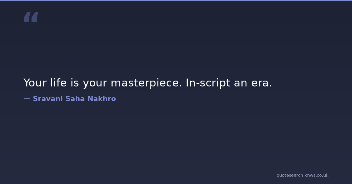 Your life is your masterpiece. In-script an era. greatness Download Image Share on X Share on Facebook Copy Link