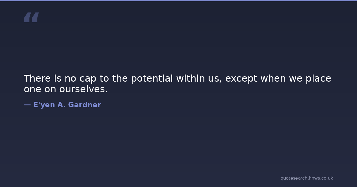 There is no cap to the potential within us, except when we place one on ourselves. freedom-of-thought greatness limitations potential-for-greatness potential-quotes Download Image Share on X Share on Facebook Copy Link