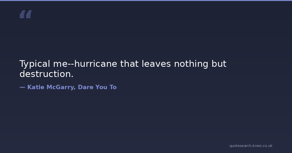 Typical me--hurricane that leaves nothing but destruction. destructive identity self-esteem Download Image Share on X Share on Facebook Copy Link