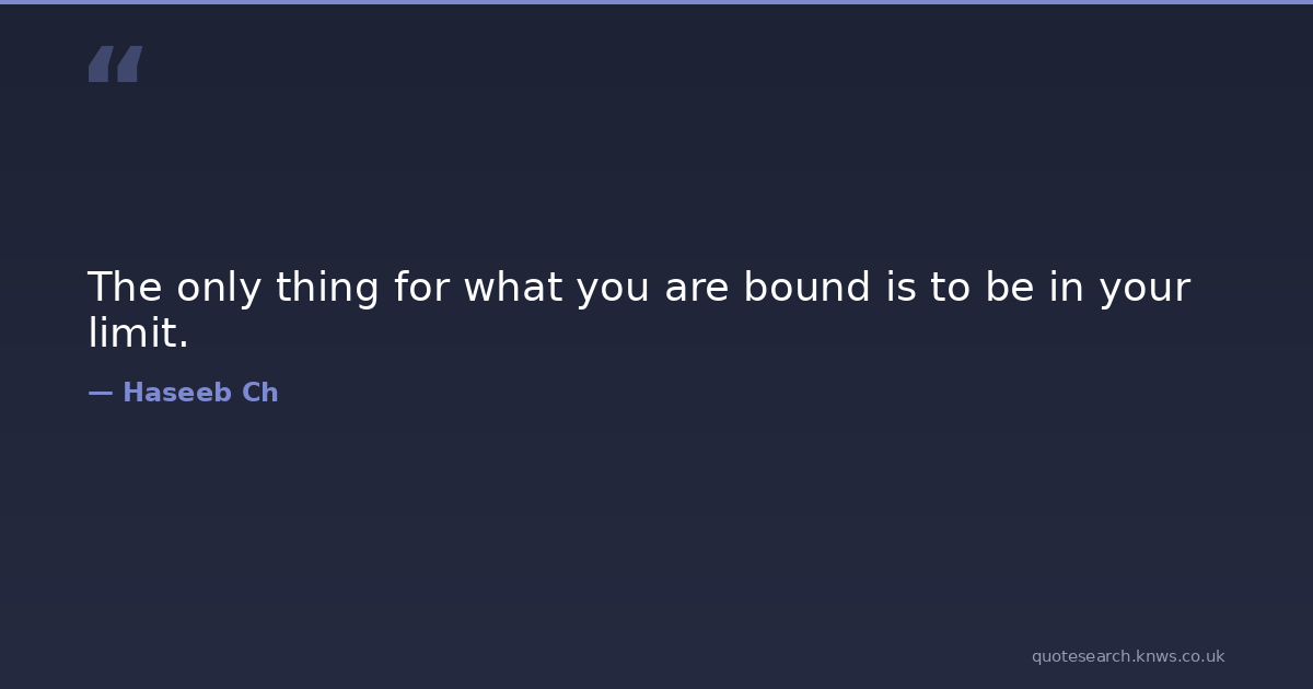 The only thing for what you are bound is to be in your limit. aristocracy inspirational self-esteem Download Image Share on X Share on Facebook Copy Link