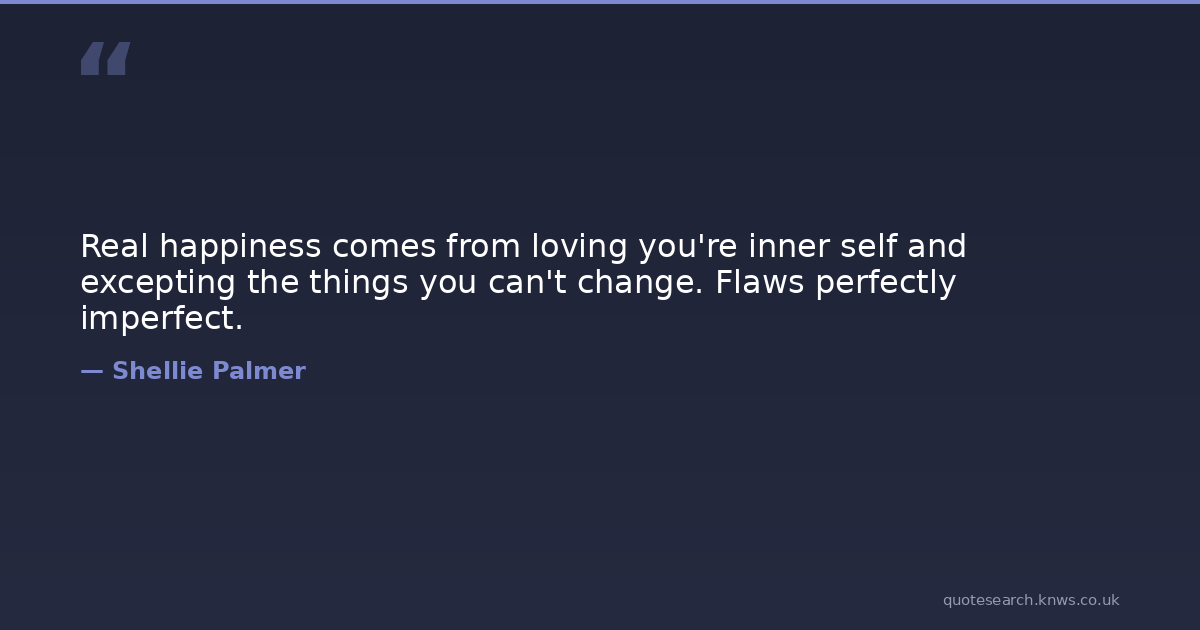Real happiness comes from loving you're inner self and excepting the things you can't change. Flaws perfectly imperfect.