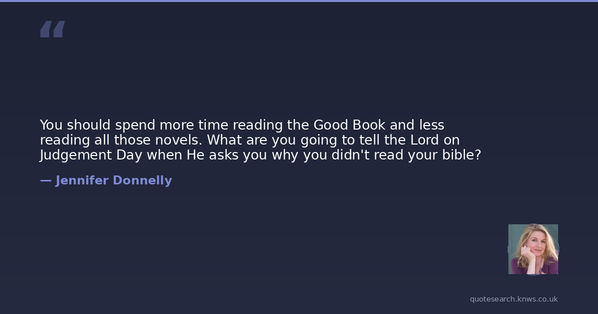 You should spend more time reading the Good Book and less reading all those novels. What are you going to tell the Lord on Judgement Day when He asks you why you didn't read your bible?
