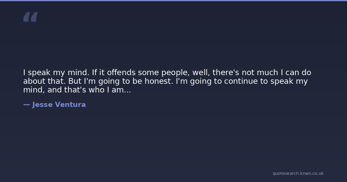 I speak my mind. If it offends some people, well, there's not much I can do about that. But I'm going to be honest. I'm going to continue to speak my mind, and that's who I am...