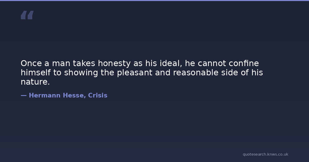 Once a man takes honesty as his ideal, he cannot confine himself to showing the pleasant and reasonable side of his nature. honesty Download Image Share on X Share on Facebook Copy Link