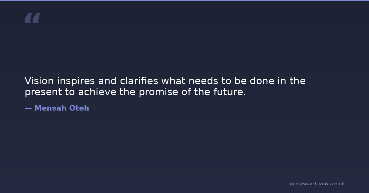 Vision inspires and clarifies what needs to be done in the present to achieve the promise of the future.