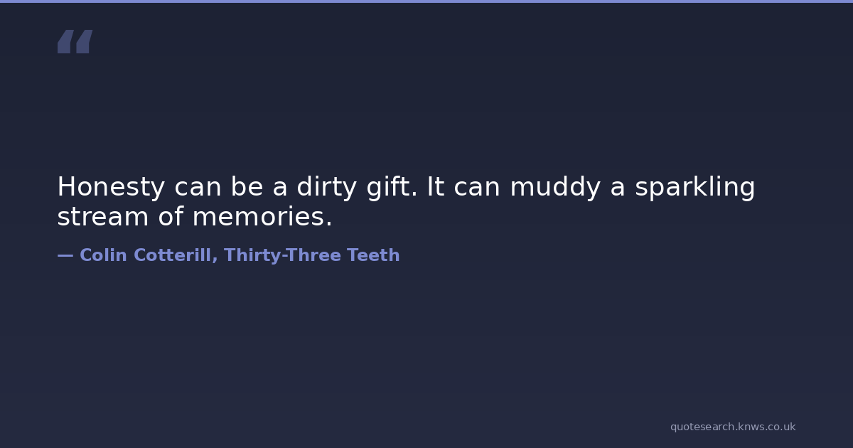 Honesty can be a dirty gift. It can muddy a sparkling stream of memories. hipocrisy honesty truth-vs-compassion Download Image Share on X Share on Facebook Copy Link