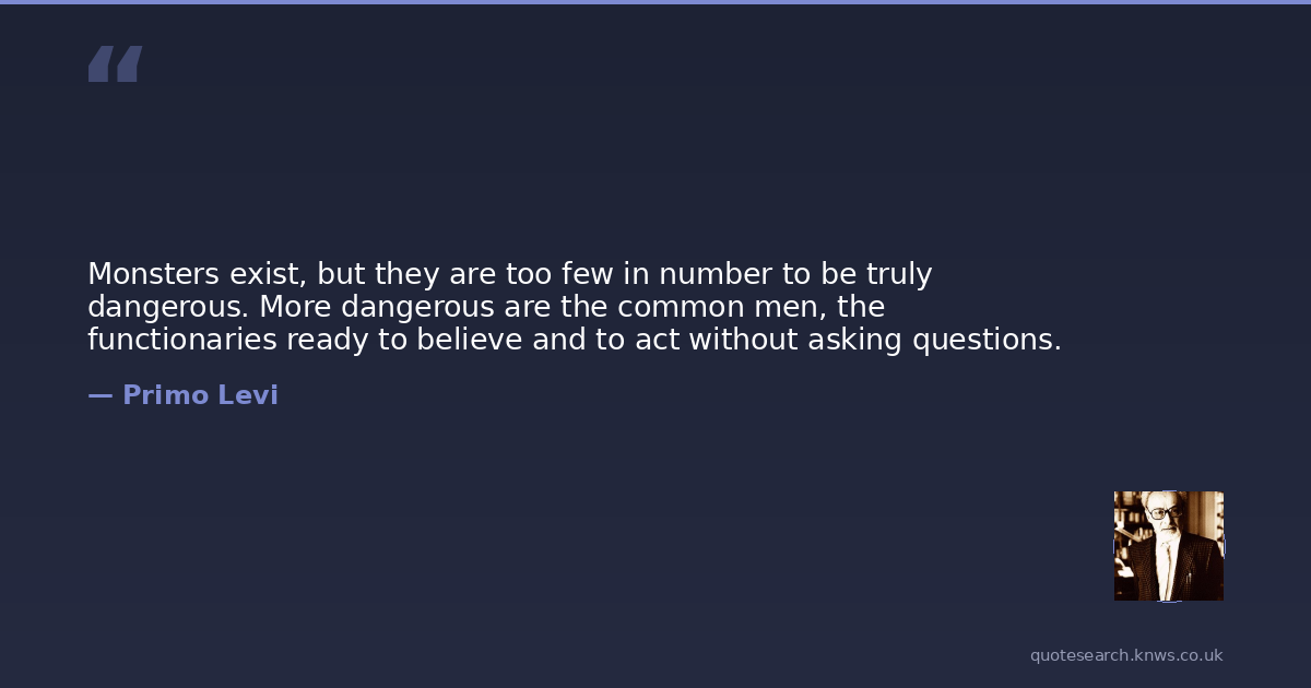 Monsters exist, but they are too few in number to be truly dangerous. More dangerous are the common men, the functionaries ready to believe and to act without asking questions.