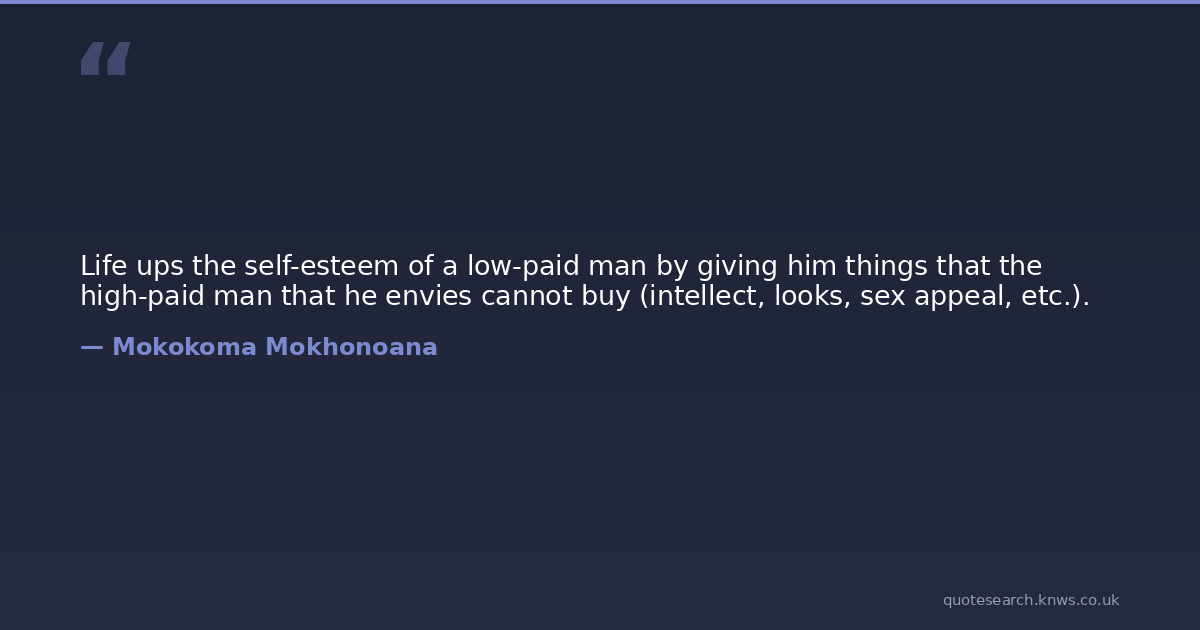 Life ups the self-esteem of a low-paid man by giving him things that the high-paid man that he envies cannot buy (intellect, looks, sex appeal, etc.).