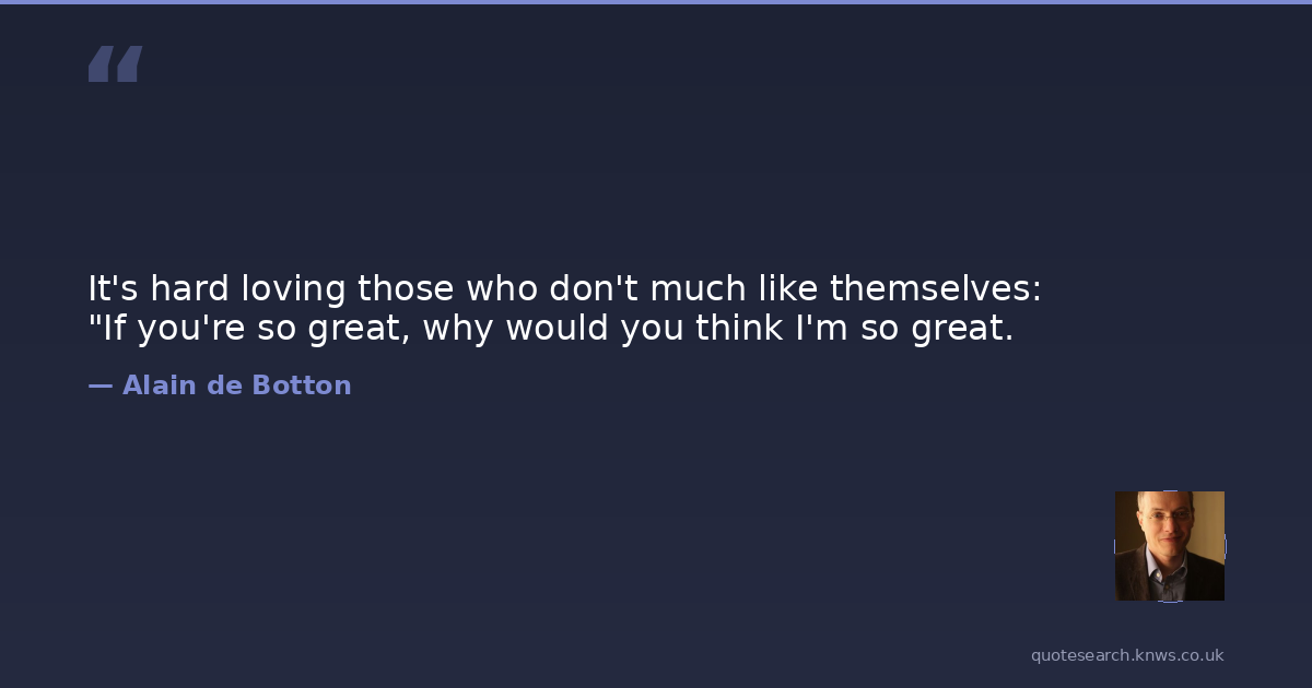Alain de Botton was a contemporary British author. Alain de Botton is a Swiss-born British author and public speaker. His books discuss various contemporary subjects and themes, emphasizing philosophy's relevance to everyday life. Read more on Wikipedia →