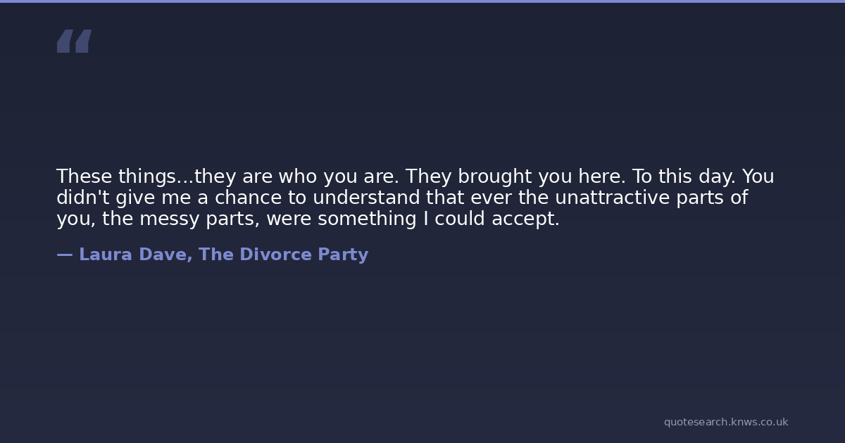 These things...they are who you are. They brought you here. To this day. You didn't give me a chance to understand that ever the unattractive parts of you, the messy parts, were something I could accept.