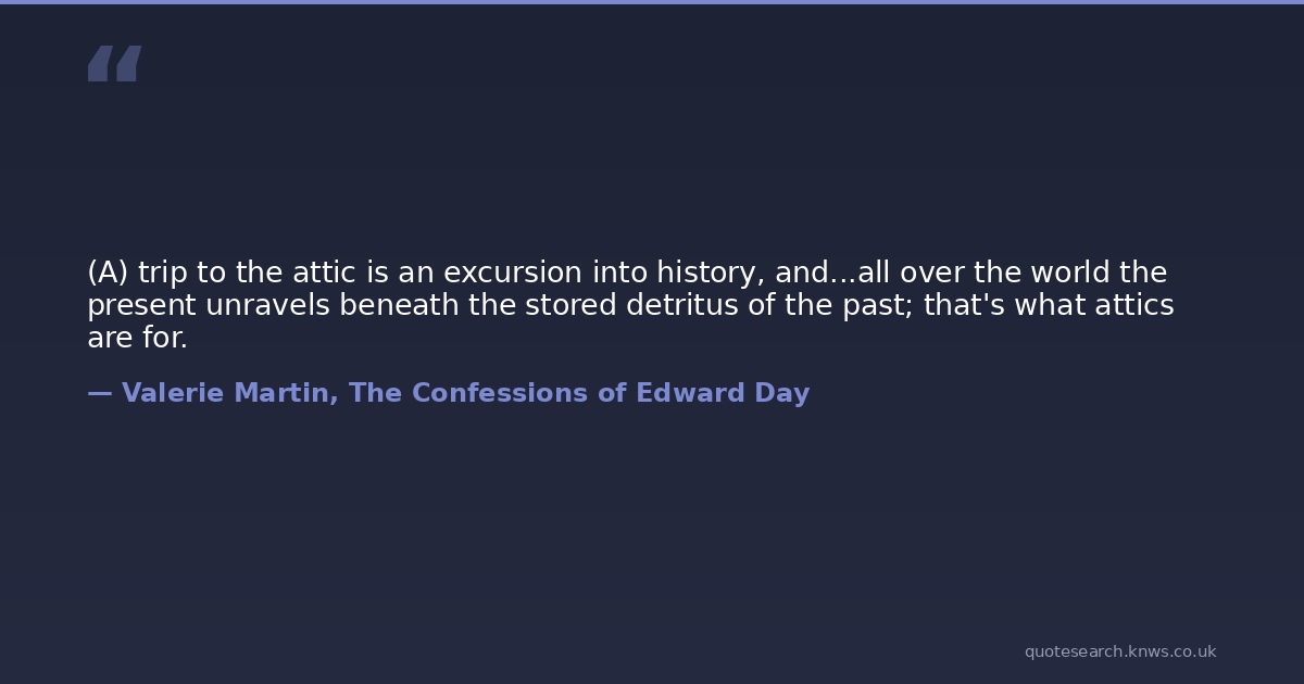 (A) trip to the attic is an excursion into history, and...all over the world the present unravels beneath the stored detritus of the past; that's what attics are for.