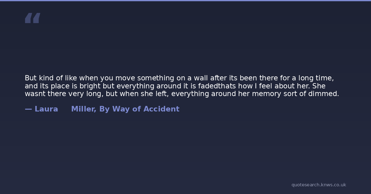 But kind of like when you move something on a wall after its been there for a long time, and its place is bright but everything around it is fadedthats how I feel about her. She wasnt there very long, but when she left, everything around her memory sort of dimmed.