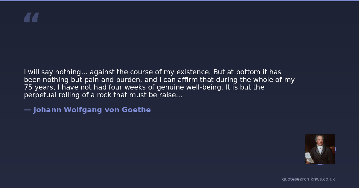 I will say nothing... against the course of my existence. But at bottom it has been nothing but pain and burden, and I can affirm that during the whole of my 75 years, I have not had four weeks of genuine well-being. It is but the perpetual rolling of a rock that must be raised up again forever.
