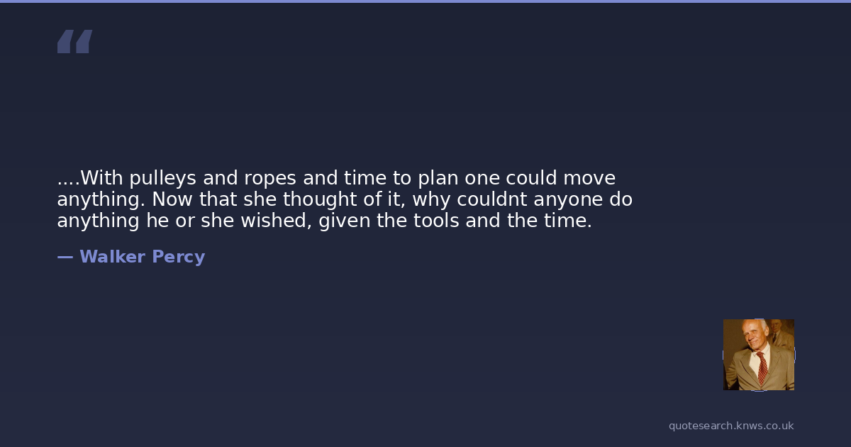 ....With pulleys and ropes and time to plan one could move anything. Now that she thought of it, why couldnt anyone do anything he or she wished, given the tools and the time.