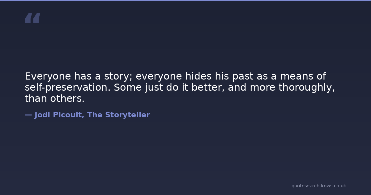 Everyone has a story; everyone hides his past as a means of self-preservation. Some just do it better, and more thoroughly, than others.