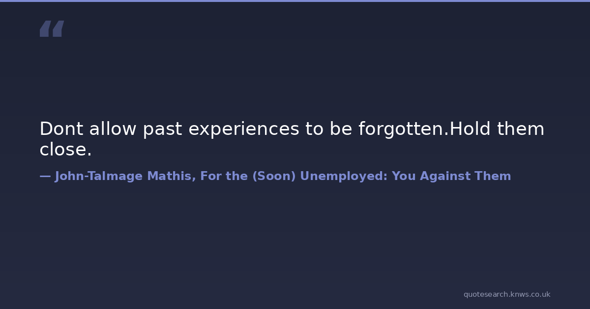Dont allow past experiences to be forgotten.Hold them close.
