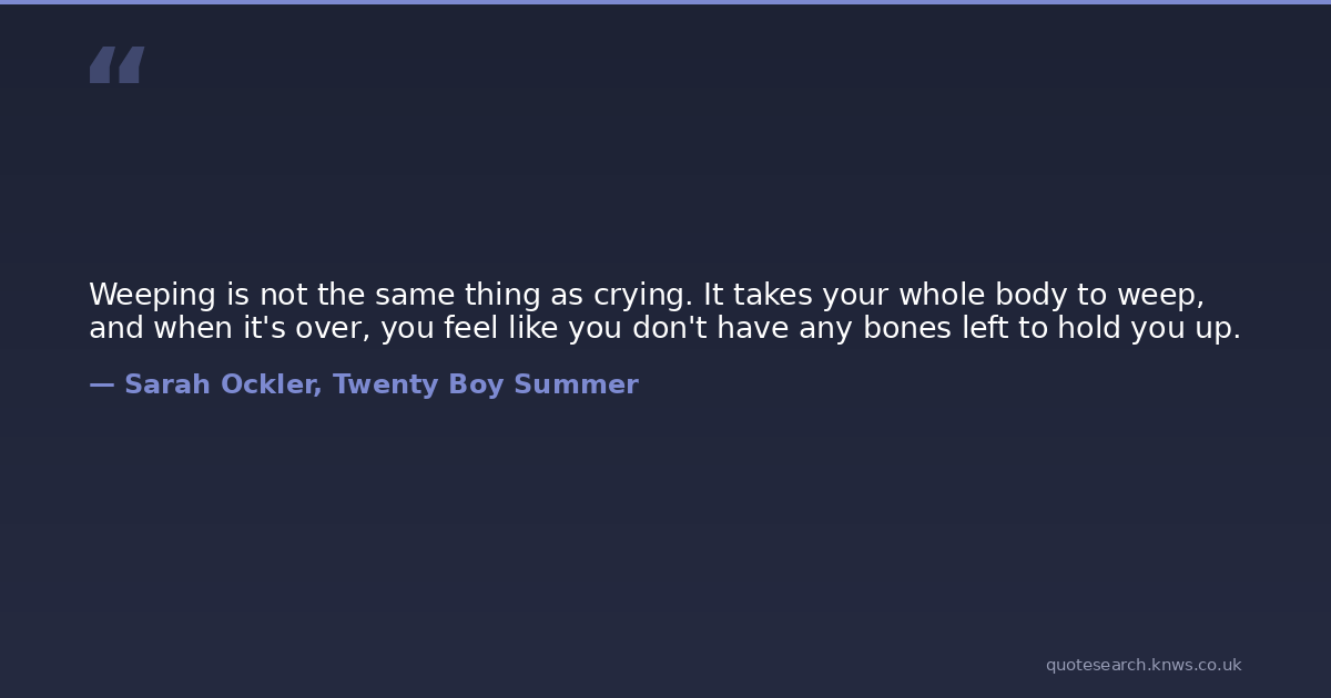 Weeping is not the same thing as crying. It takes your whole body to weep, and when it's over, you feel like you don't have any bones left to hold you up.