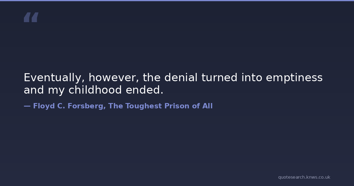 Eventually, however, the denial turned into emptiness and my childhood ended. childhood childhood-memories childhood-traumas death death-of-a-parent denial disbelief emptiness empty end ended forced-to-grow-up growing-up-too-fast numbness Download Image Share on X Share on Facebook Copy Link