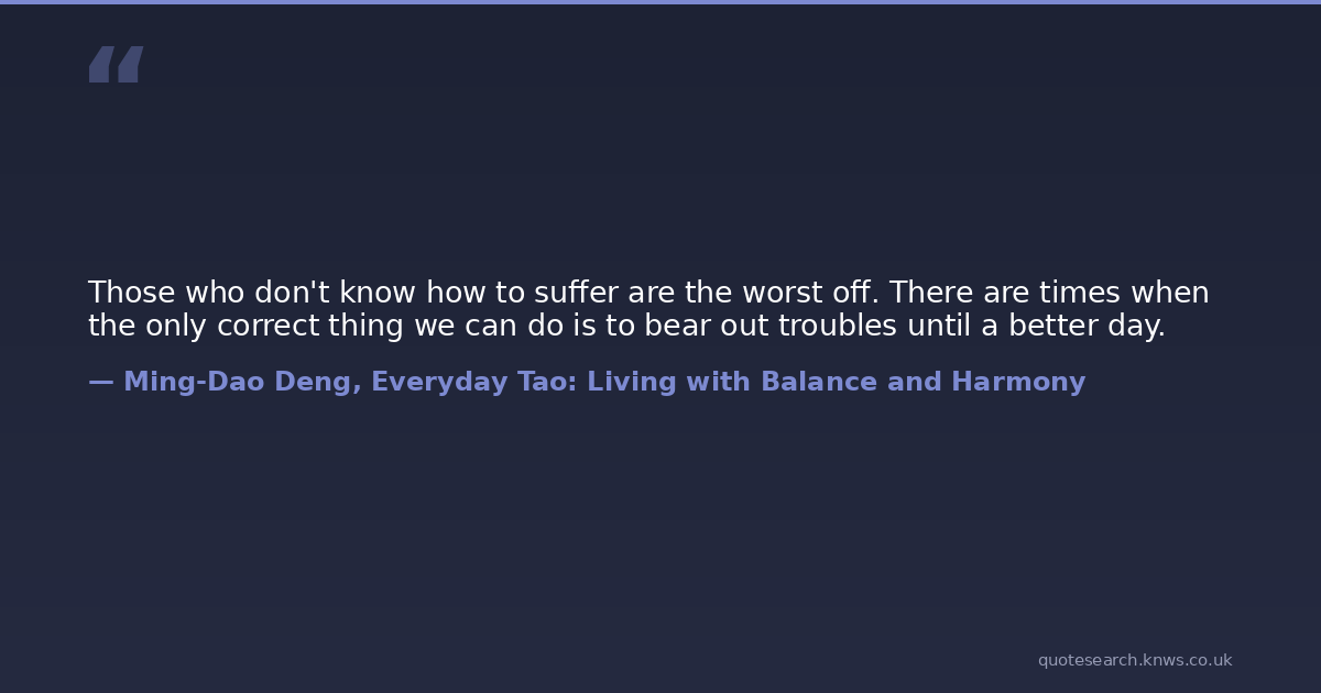 Those who don't know how to suffer are the worst off. There are times when the only correct thing we can do is to bear out troubles until a better day.